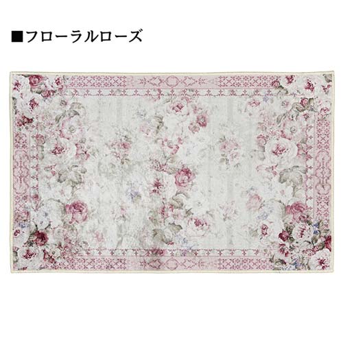 ローズ柄マット 70×120cm 玄関 フロアー ローズ 薔薇 かわいい エレガント ポリエステル