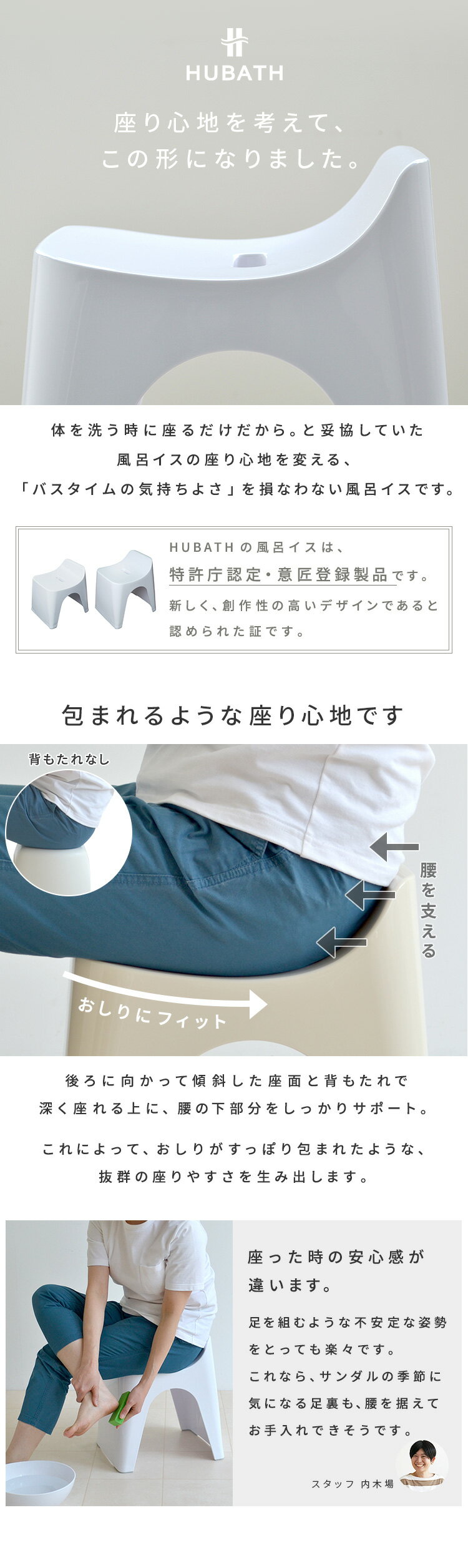 カテゴリ →バスチェア/湯桶 ブランド/シリーズ →ヒューバス/HUBATH 色/柄 ホワイト/ピンク/ブルー/アイボリー/ブラウン/ブラック 素材 本体:ポリプロピレン 脚部:EVA樹脂 サイズ 風呂イス:(約)幅28×奥行34×高さ34.5cm※座面高さ25cm →座面高さ30cmはこちら 重量 (約)1.4kg 機能/性能 カビ・ヌメリ防止加工 原産国 日本 お手入れ方法 ・使った後は、浴室用中性洗剤と、樹脂にキズが残らないやわらかいスポンジなどでお手入れしてください。
