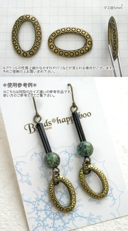 アクリルビーズ フェイクメタル フープ 楕円形 オーバル 縦24.5mm(真鍮古美)*