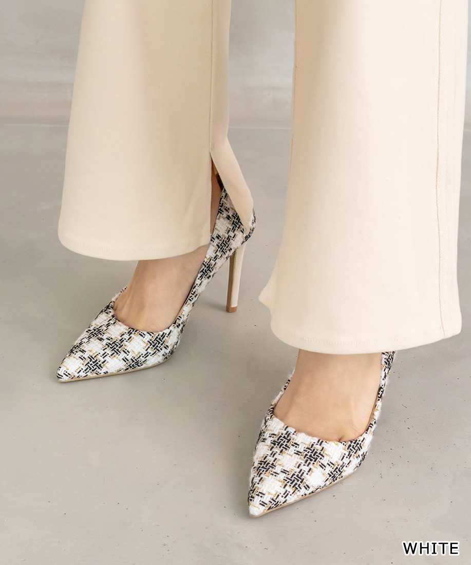 お問い合わせ番号:DP11515 Yシーズンムード高まるツイードパンプスPOINT・上品な印象のツイード・華奢なヒールが女性らしい・高級感が漂うシルエット・足元を美しく魅せてくれる9.5cmヒール機能性・返りが良い 屈曲性が良く歩きやすい20220722<素材>ツイード生地、スエード生地カラー展開:BLACK(ブラック)・WHITE(ホワイト)・MIX(ミックス)サイズ展開:22.5cm・23.0cm・23.5cm・24.0cm・24.5cm・25.0cm・25.5cmメーカー希望小売価格はメーカー商品タグに基づいて掲載しています。